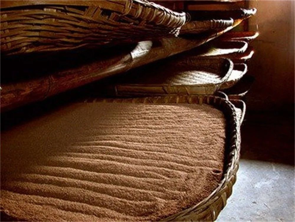 收堆溫度在28-30之間,收堆后將物料移至糖化箱中,攤平,根據氣溫,采用熱薄、冷厚原則將熟糧料層控制在15--35厘米厚度,溫度低時更要(用透氣棉織物,糖化要有氧進行)蓋好,做好保溫工作,糖化一般在24--32小時內完成。糖化升溫后應監測箱內溫度變化及菌絲生長狀況,適時翻攪物料,使箱四周的低溫物料與中間高溫物料互混,以達到均勻糖化的效果。糖化溫度一般控制在38℃以下,超過這一溫度根霉菌、酵母菌的代謝會受到抑制,甚至停止。酒曲不同,完成糖化后的狀態不同,有的出嫩箱,有的稍老一些。糖化酶+白藥;復合曲,干脆免糖化,到都會有糖化酶的微苦澀味。