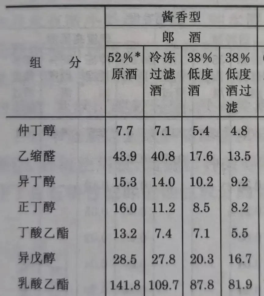 降度后的呈香呈味物質濃度本身就小,中間又濾去了一些,盡管后邊用了不亞于53度的調味老酒,但調味酒使用量有限,酸酯濃度最終還是提不起來。