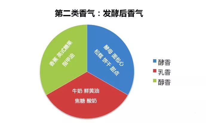 一般來說,二類香氣主要指的是來源于發酵階段的香氣。因為酵母在發酵過程中可以產生許多芳香物質,這包括酒精發酵帶來的發酵面包味、酵母味和酒香味,蘋果酸-乳酸發酵帶來的黃油和堅果味。不過實際上,除了品種本身和陳年帶來的香氣外,其它釀造階段產生的香氣也可以稱之為二類香氣,例如酒渣接觸后發展而來的奶油味和餅干味等。