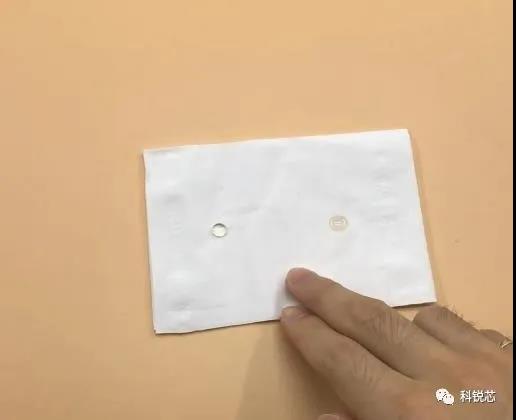 2. 酒滴在紙巾上,酒液略緩慢地均勻暈開,周邊淺的水跡很小。酒液緩慢暈開是好醬酒的一個明顯的標志。酒精和水的比重不同,散開的速度也不同,而酒液經過長期密封、發酵后,酒曲的先天發酵作用開始充分顯現,酒曲的核心因子,直接決定了酒水和酯化物的融合度。越是好酒,融合度越高,酒液和水融合完美,周邊水跡就會很小。