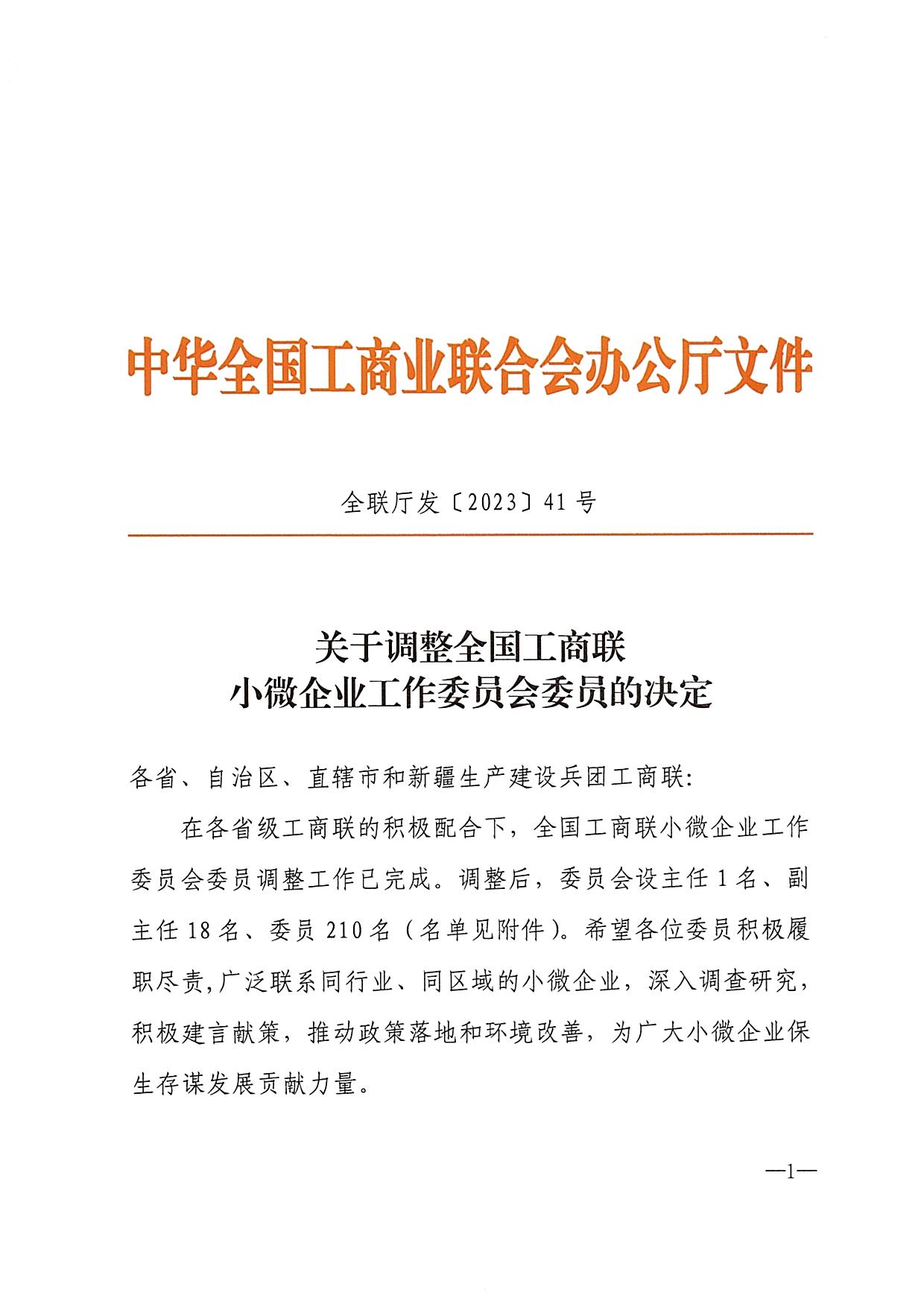 喜報(bào)丨我公司董事長(zhǎng)駱為民當(dāng)選為全國(guó)工商聯(lián)小微企業(yè)工作委員會(huì)委員