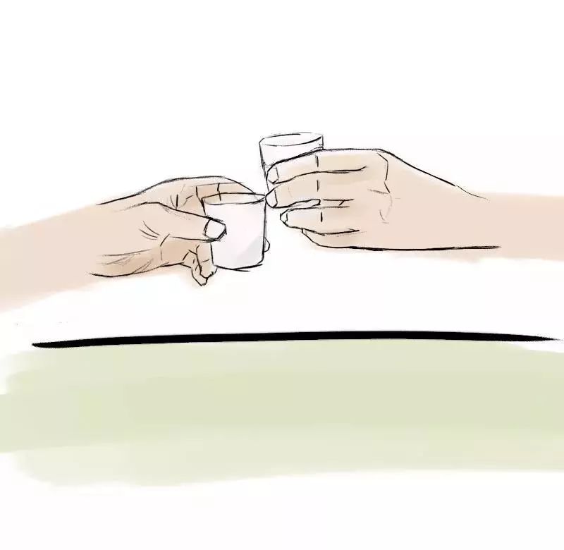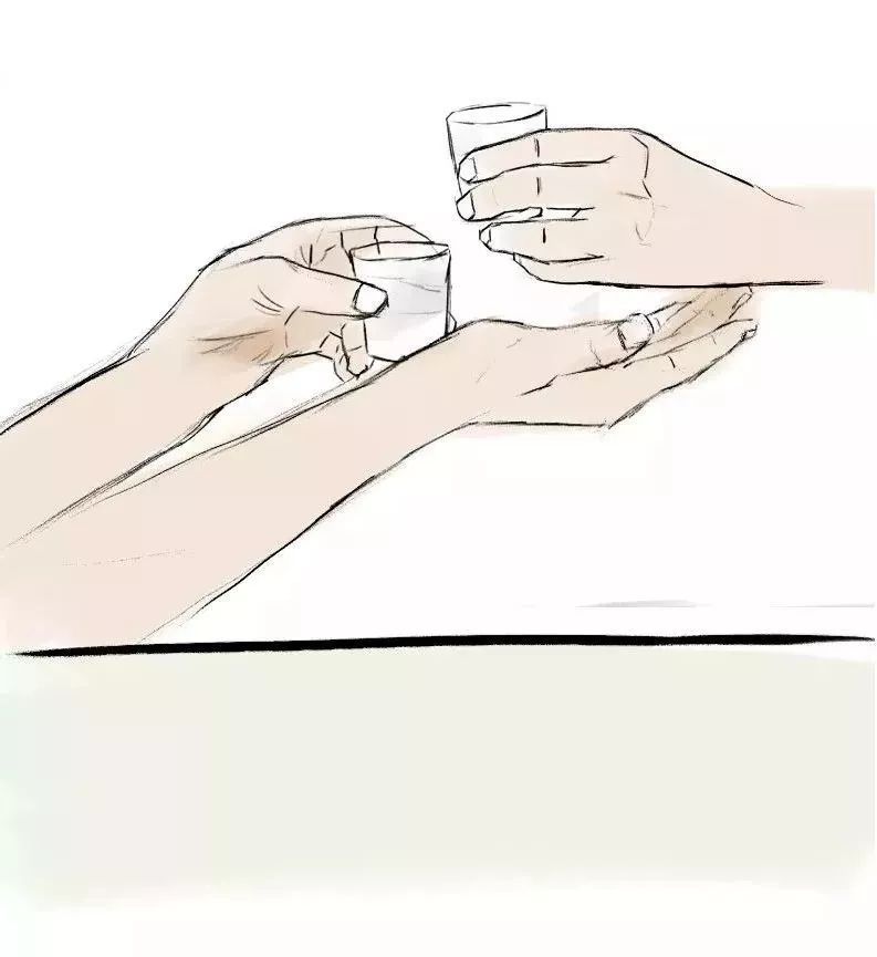 有時候對方端酒杯的手比較低,靠近桌面了,怎么辦?比他更低就砸壞桌子了……