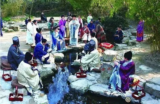 據記載,類似上巳曲水之類的 “雅事”, 其余韻一直蔓延到二十世紀四十年代;而 “禊賞亭” 、 “流杯亭” 之類的景致,迄今還可在北京故宮、紹興蘭亭等處可見,不過都是在石基上鑿成迂回曲折的溝槽的微型景觀,不再有王羲之筆下 “有崇山峻嶺,茂林修竹;又有清流激湍,映帶左右” 那種大自然的情趣了。