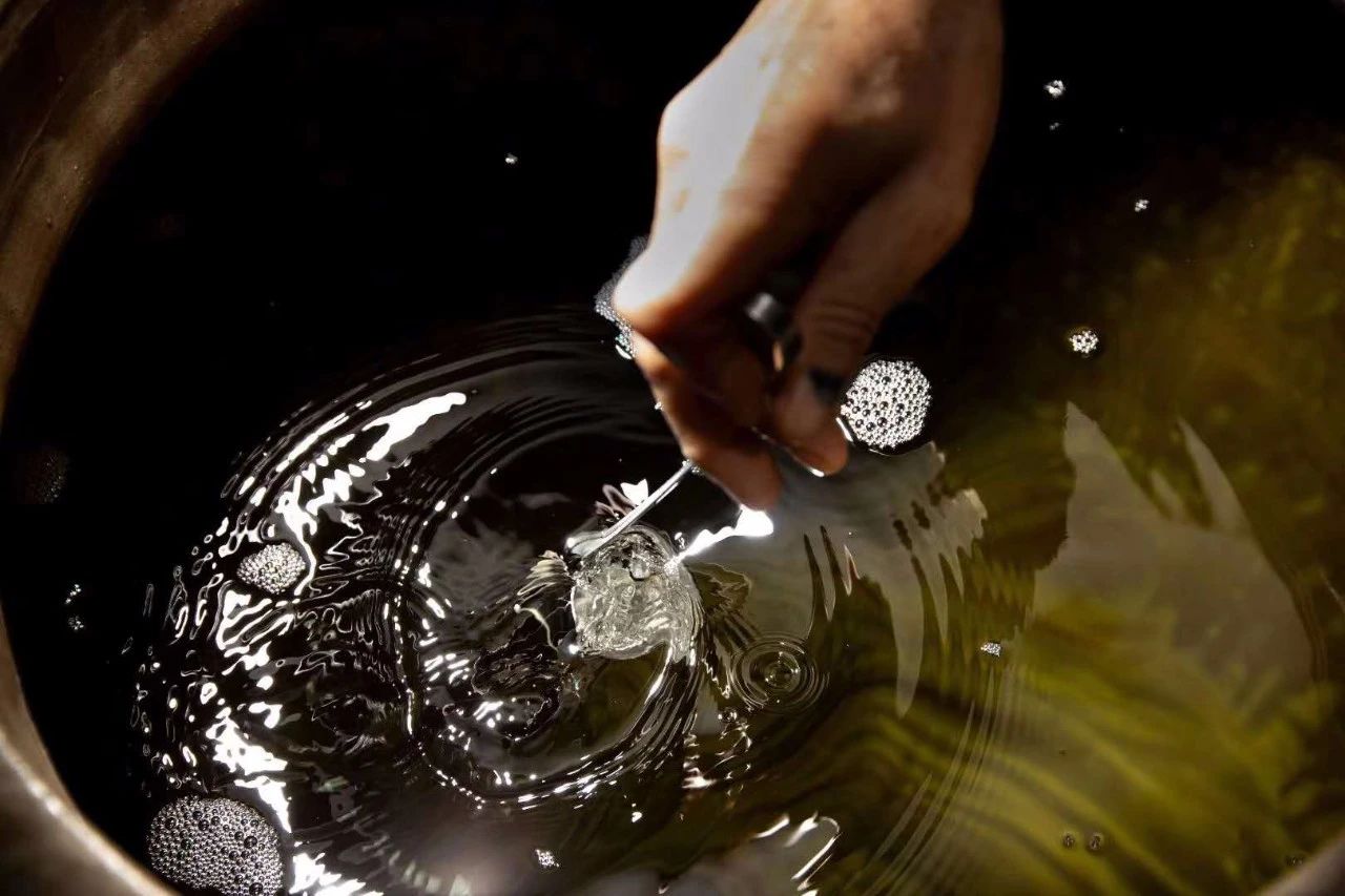 醬香型的茅臺制作工序十分復雜,一套堅持傳統的繁復工藝:端午踩曲、重陽投料、九次蒸煮、八次發酵、七次取酒、分型貯存。前后歷經30道工序、165個工藝環節,所耗1年;再加上之后勾兌存放,整整5年才能出廠。除了這些獨特工藝外,醬香酒更離不開的就是當地的天、地、水、糧。