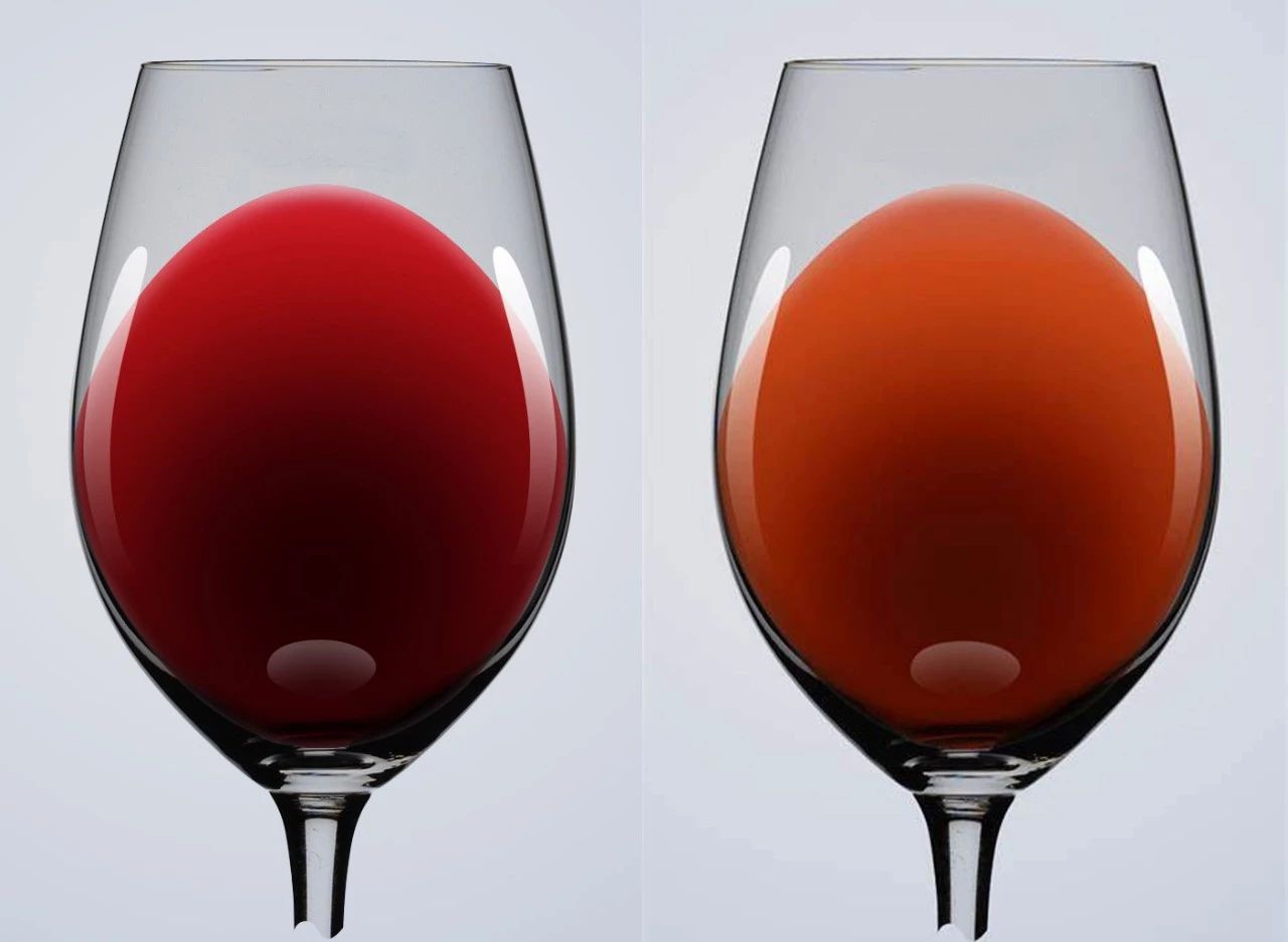 在白色背景的襯托下,將酒杯傾斜45°,從酒杯正上方觀察杯中葡萄酒,我們可以觀察酒的年齡、酒區、品種甚至酒精度。